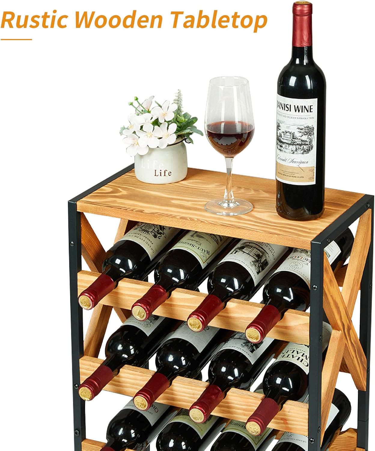 20 Bottle Wine Rack Freestanding Floor with Wood Top,Wobble-Free 5 Tier Wine Display Storage Stand Shelf,Stackable Modular Wine Bottle Holder Rack for Kitchen,Cellar,Living Room