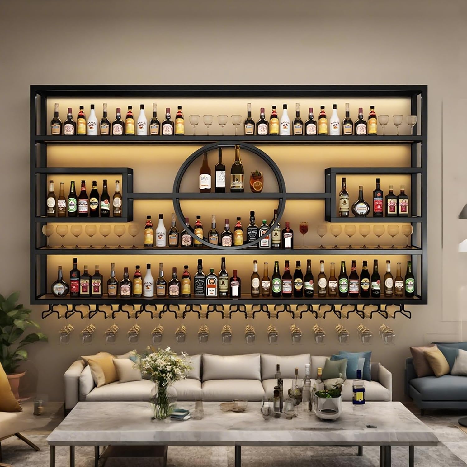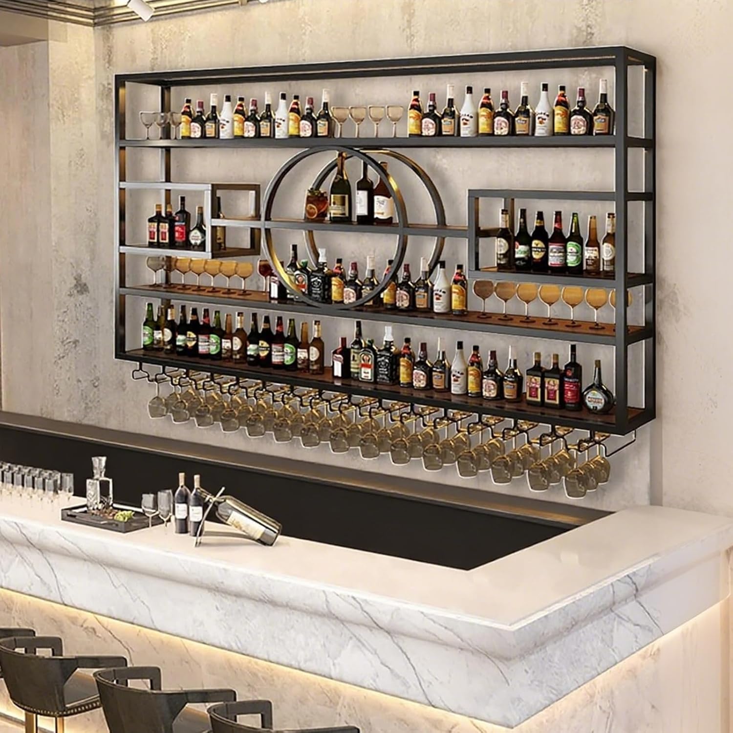 Elevate your bar or living space with this modern, wall-mounted wine rack. Crafted from sturdy iron, it offers ample storage for wine bottles and glasses, keeping your collection organized and on display. Easy to install and versatile in design, it's a functional and stylish addition.