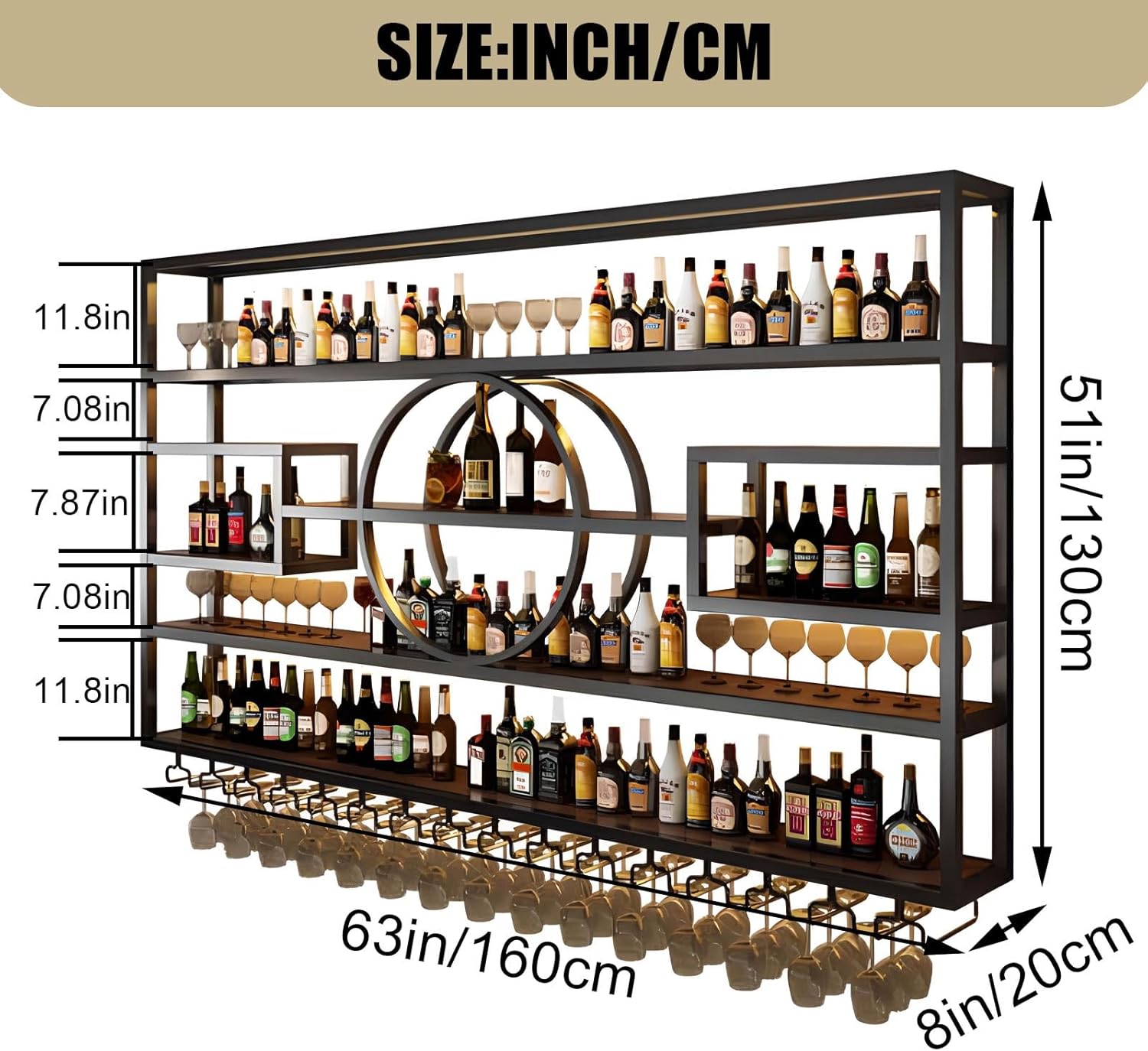 Elevate your bar or living space with the Wall-Mounted Wine Rack. Its large capacity and unique design allow you to neatly store wine bottles, glasses, and other items, creating an organized and stylish display