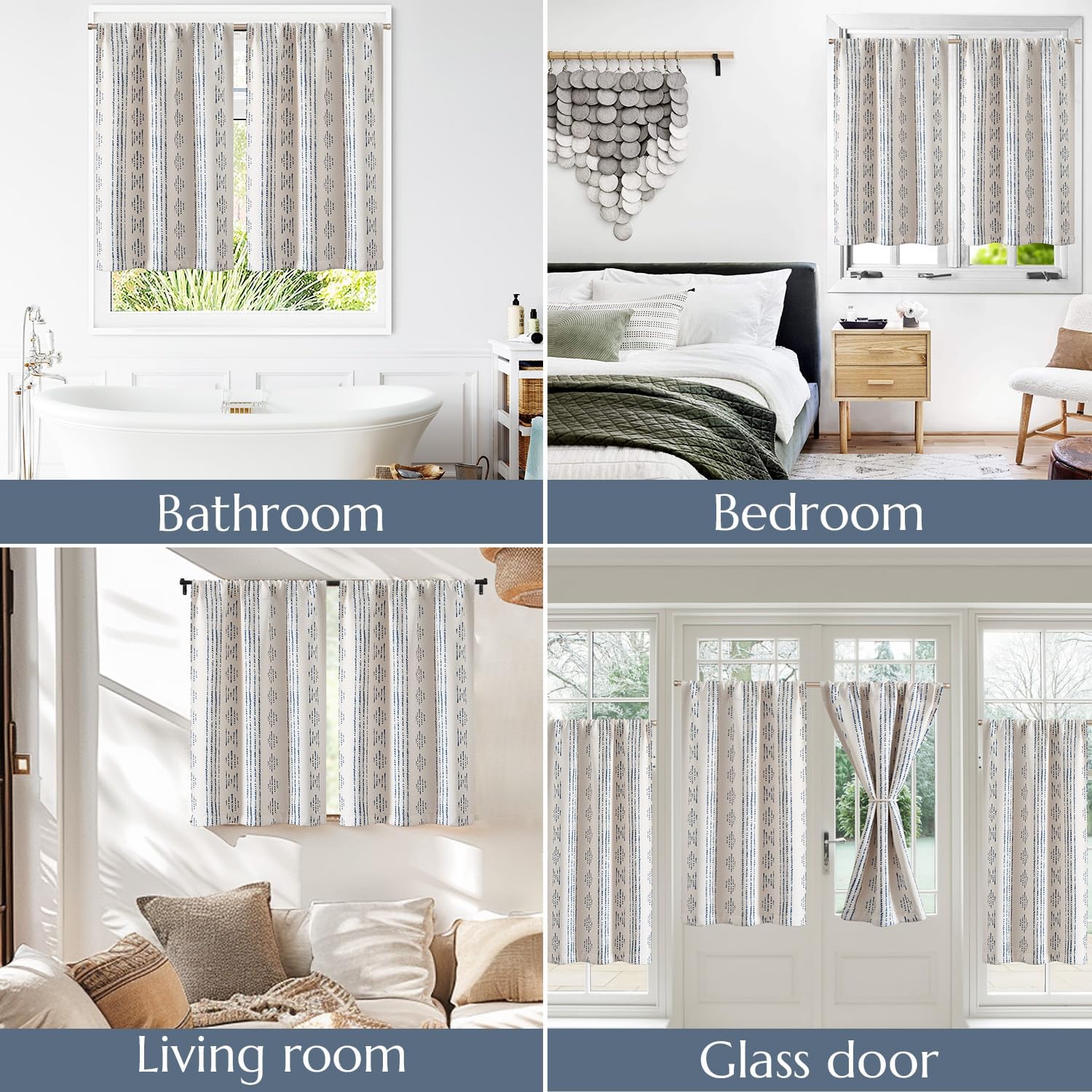 jinchan 95% Blackout Boho Kitchen Curtains 36 Inches Cafe Tier Curtains Bohemian Small Drapes for Bedroom RV Basement Half Window Room Darkening Thermal Insulated 2 Panels Blue on Beige