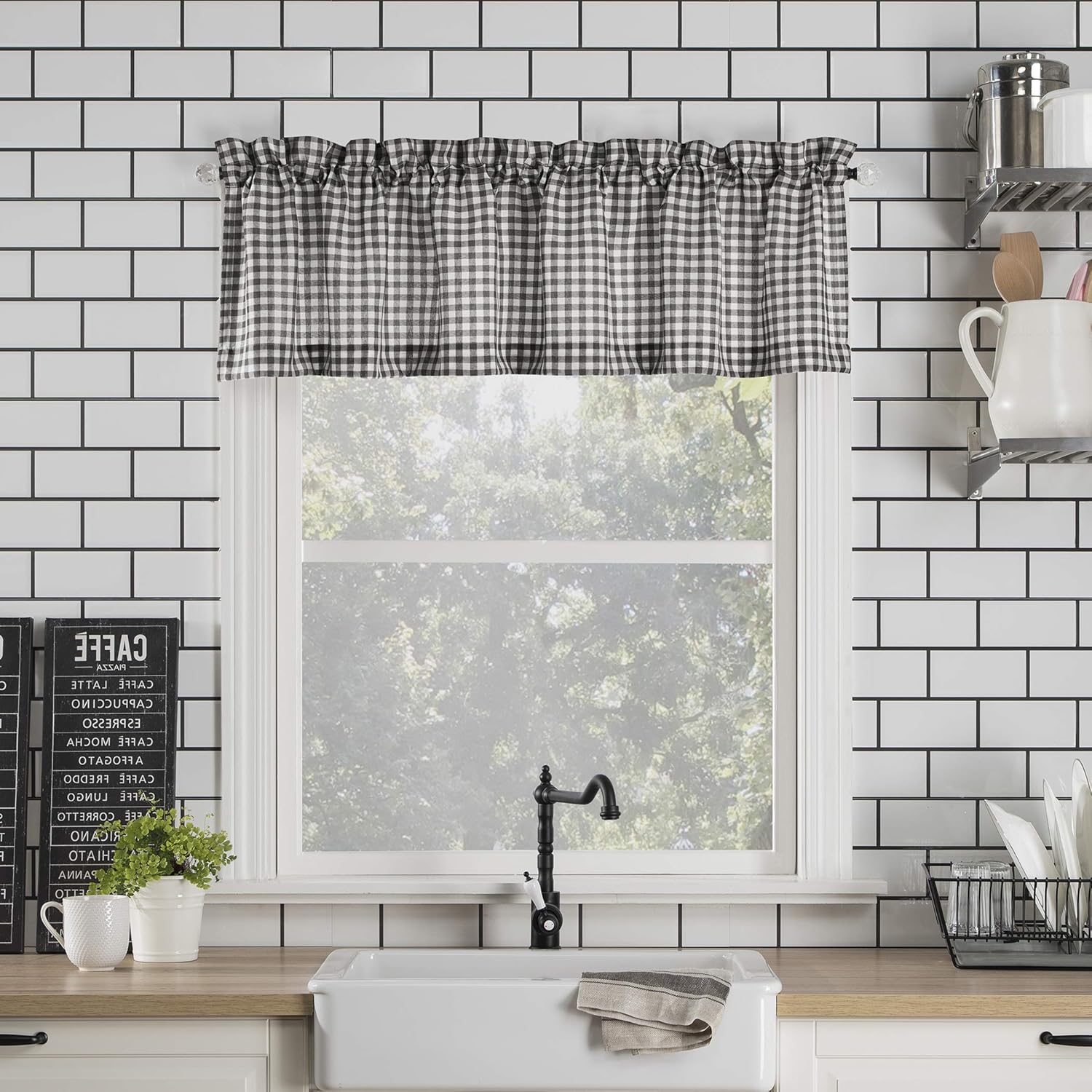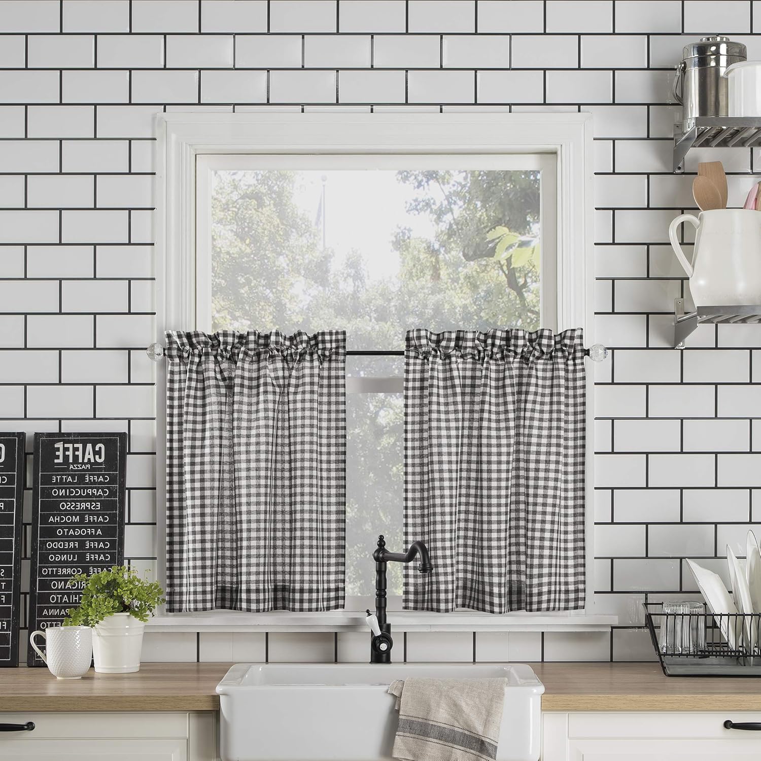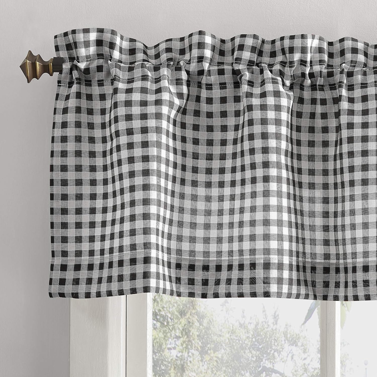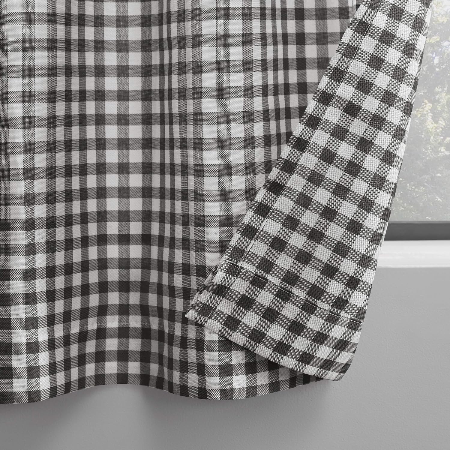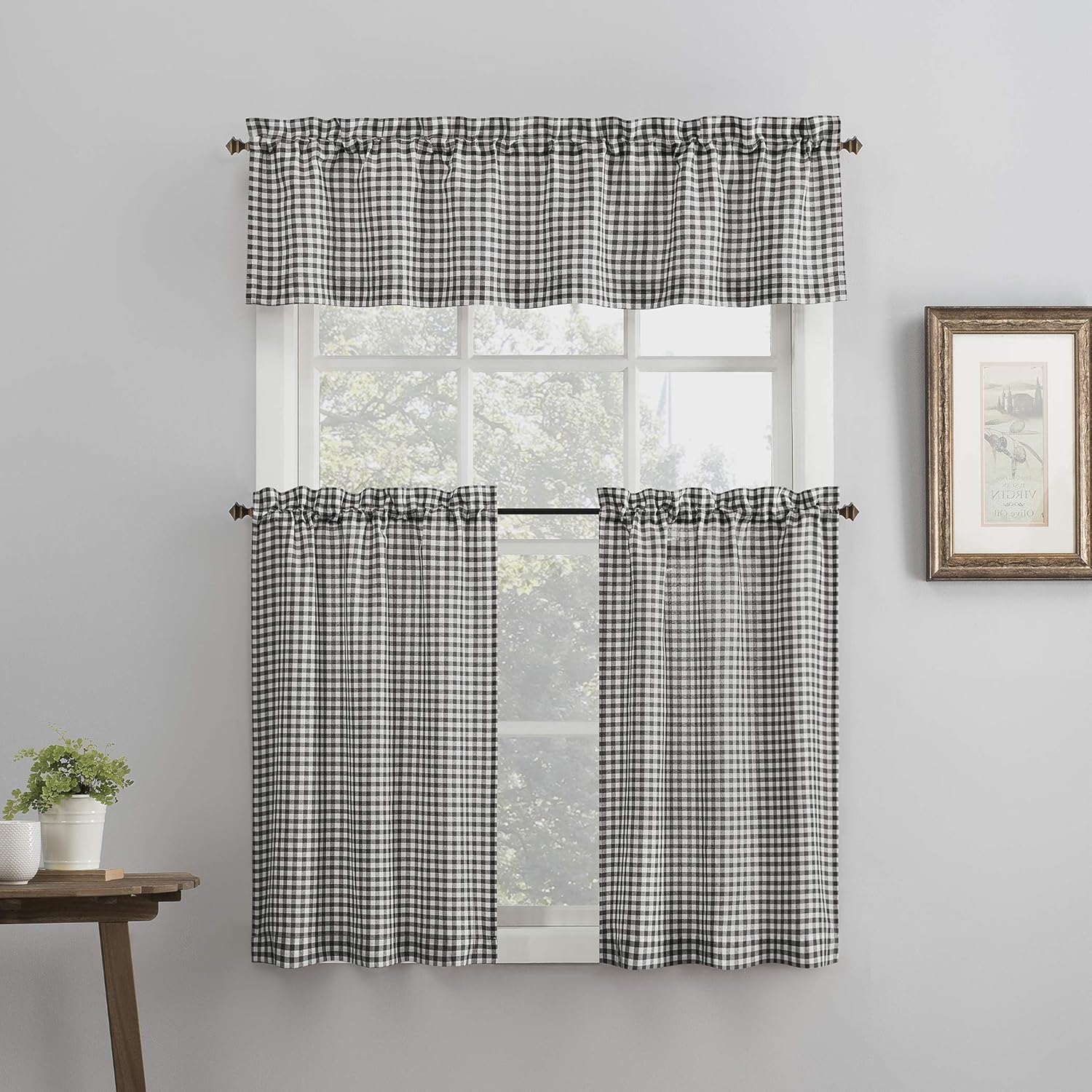 No. 918 Parkham Farmhouse Plaid Semi-Sheer Rod Pocket Kitchen Curtain Valance and Tiers Set, 54" x 24", Black/White