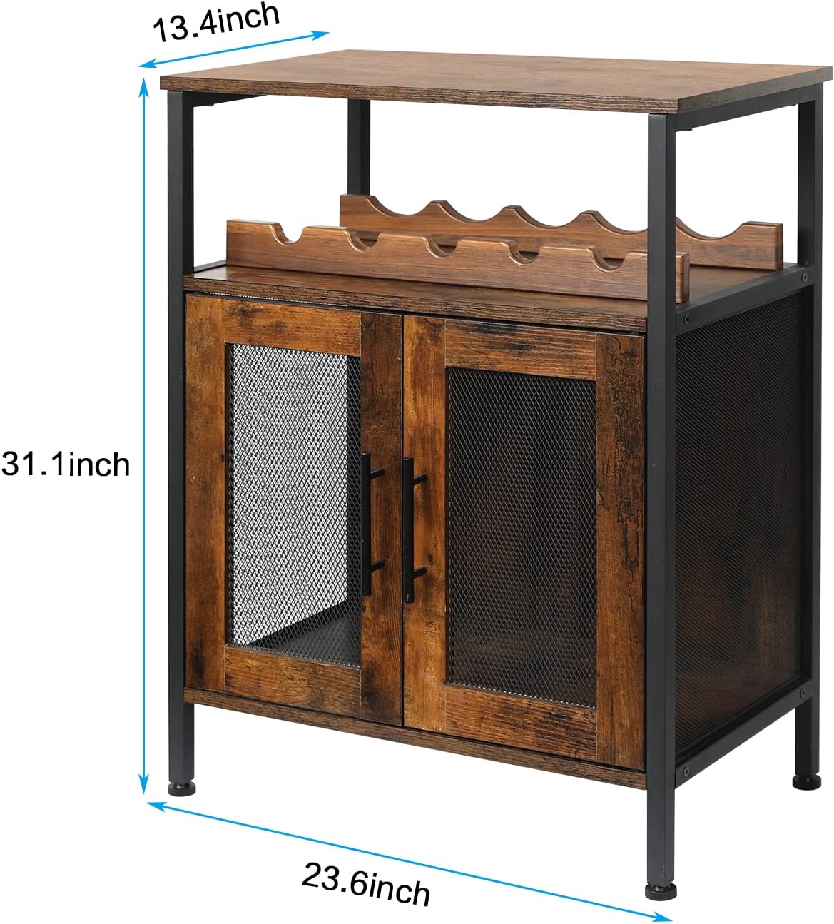 X-cosrack Wine Bar Rack Cabinet with Detachable Wine Rack, Coffee Barwith Glass Holder, Small Sideboard and Buffet Cabinet with Mesh Door, Rustic Brown(Patent Pending)